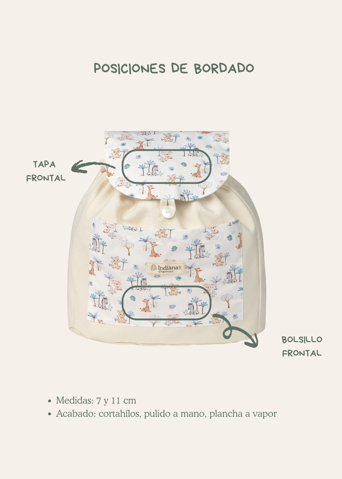 Mochila infantil confeccionada en loneta de algodón 100 % orgánico,