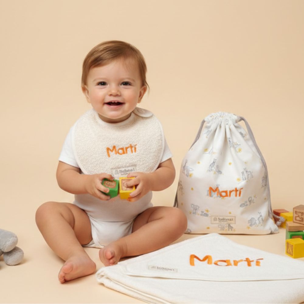 - Colección Baby: básicos esenciales como toallas, baberos y accesorios personalizados, ideales para el día a día de los más pequeños.
